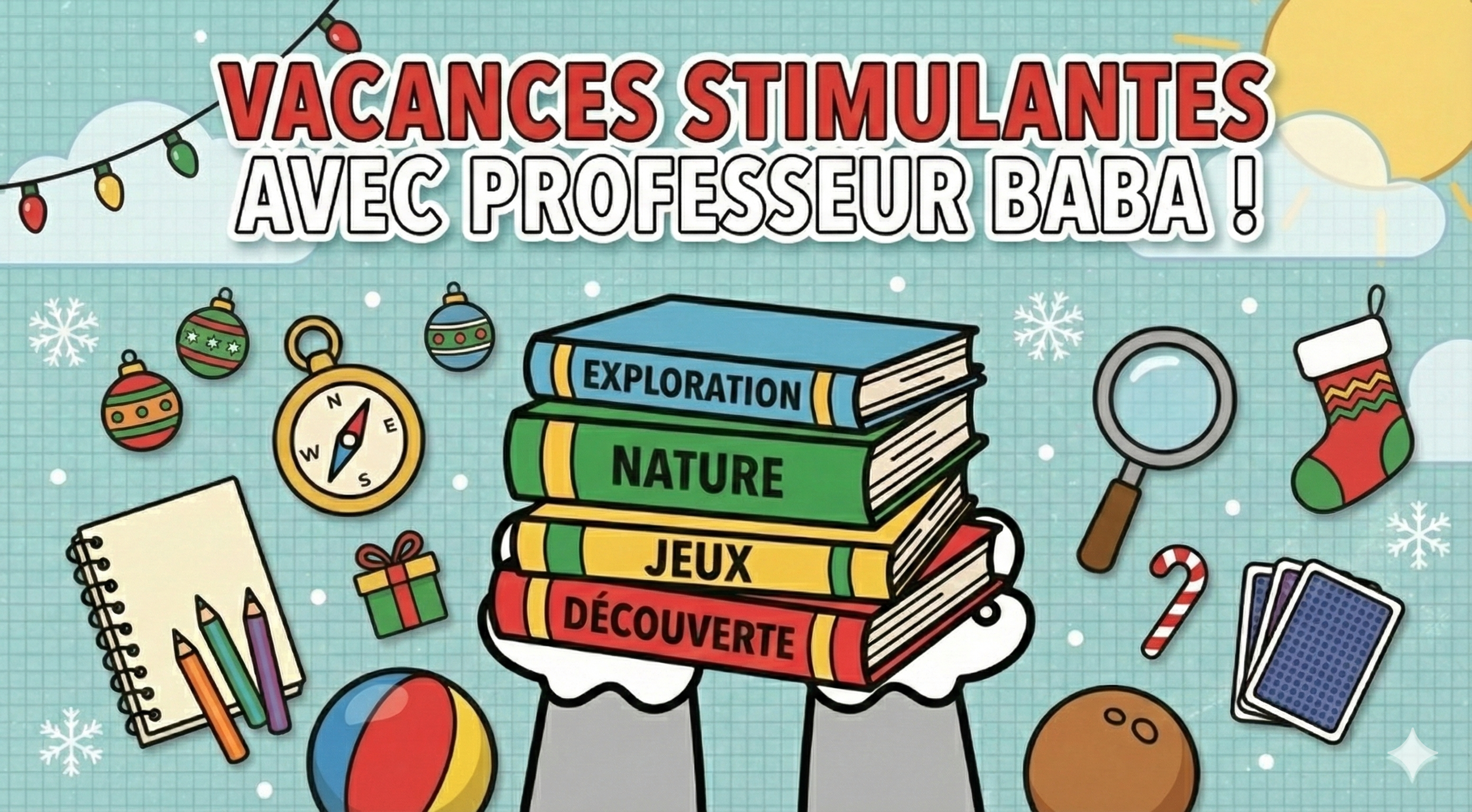 Cet hiver, on range les cahiers et on sort la curiosité ! Professeur Baba vous invite à des vacances qui stimulent les neurones sans oublier la magie des fêtes!